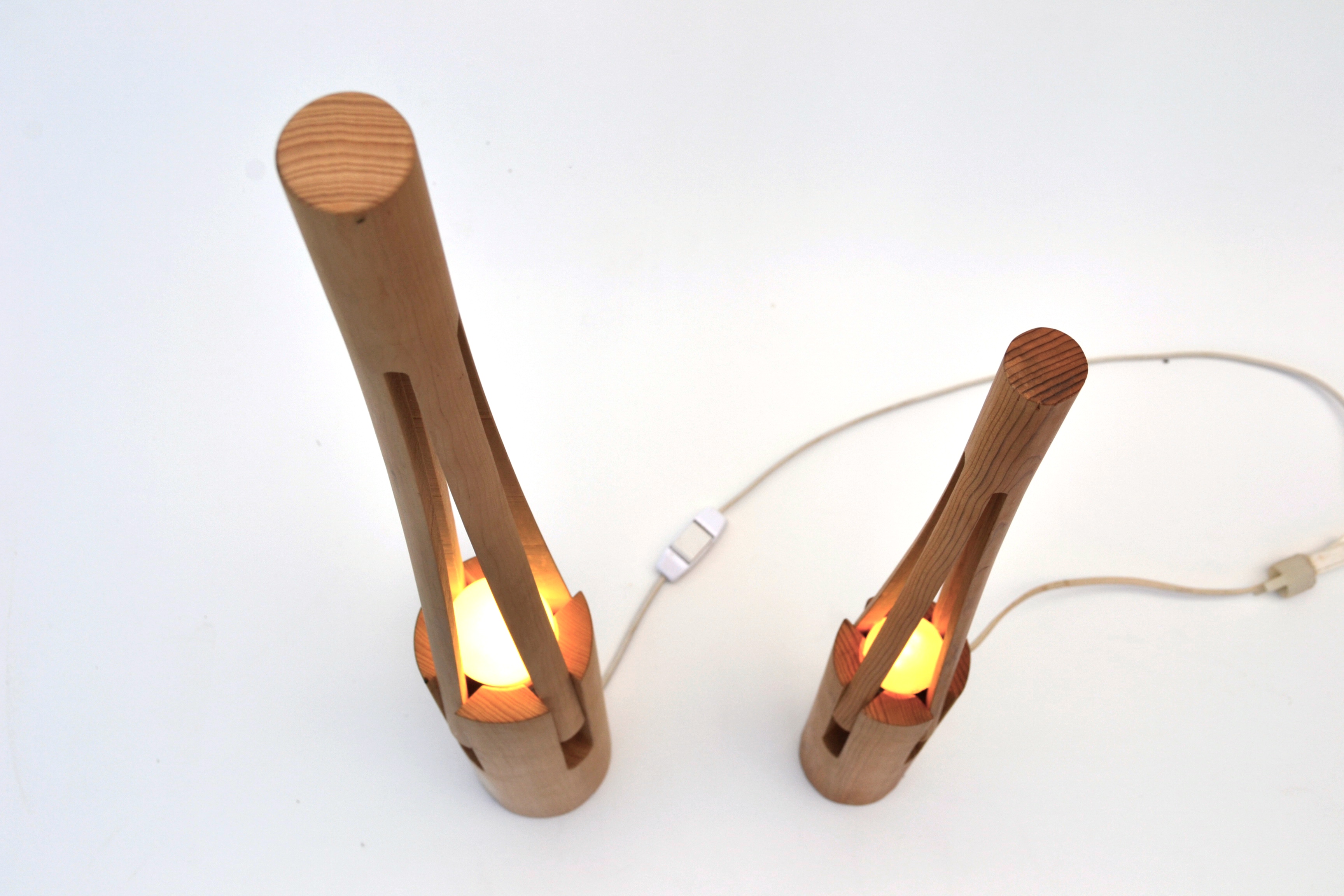 Cedro belongs to a series of lighting objects made entirely out of solid wood. We use CNC technology to produce all components by combining turning and routing processes. This simple and visually arresting construction makes a perfect piece for any space. The result is an environment friendly object: locally made out of FSC oak – constructed to last and efficient thanks to energy-saving bulbs. Environmentally minded all around.