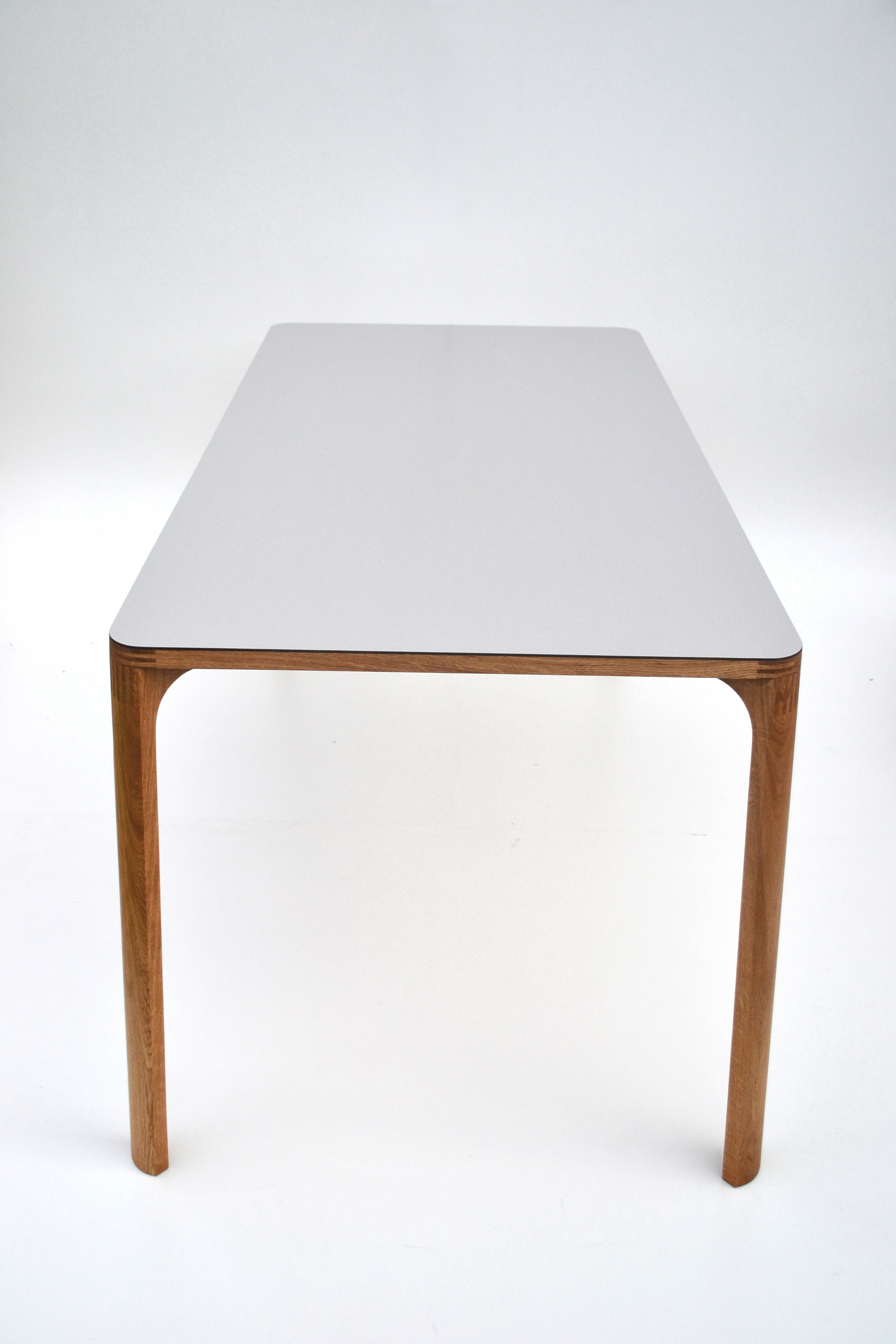 Giro es una mesa de aspecto refinado gracias a los detalles de su estructura. Se trata de un diseño versátil que permite la fabricación en gran formato (hasta 100 x 240 cm). También se adapta a espacios de trabajo si añadimos un gestor de cableado para conexiones en el centro. Las patas son desmontables y el sobre laminado aporta la gama más amplia de acabados y colores.