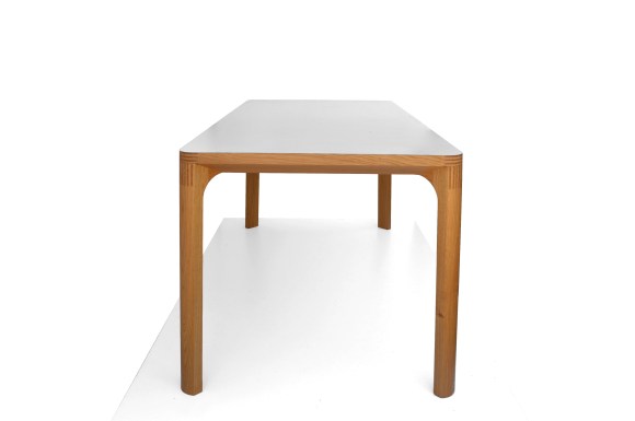 Giro table is a system that shows a very refined look thanks to the details of its structure. A versatile design that allows big formats (up to 100 x 240). It also works as a desk system including a cable management facility. Legs are detachable and a laminated top allows for choice of colour and texture.